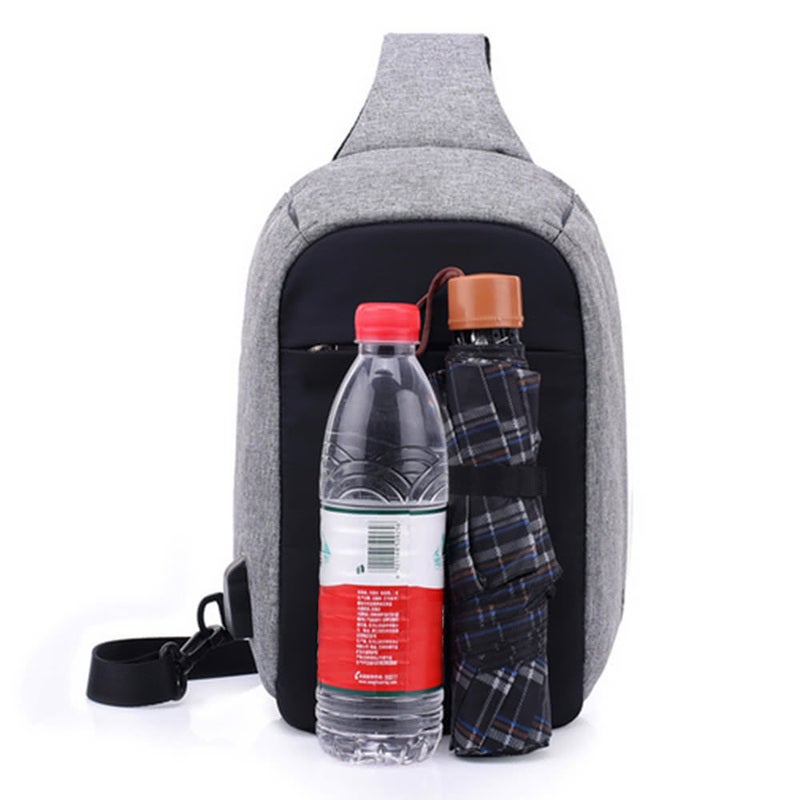 The Fabric Is Thick Showing The Texture And Taste Of The Brand Itself. The Internal Layout Is Clear And Easy To Categorize Items. Built-In Removable Charging Line You Can Recharge Your Phone Anytime And Anywhere. Design Each Detail Function Accessories Attentively. In Short This Is A Practical Chest Bag.