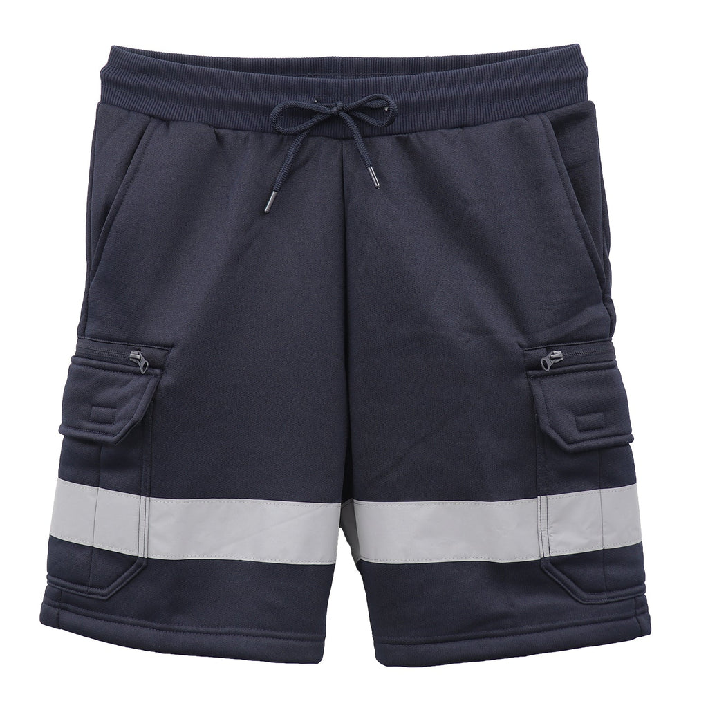 Hi Vis Fleece Work Cargo Shorts Reflective Tape Workwear Tradie Utility Pants Navy L Men's Shorts