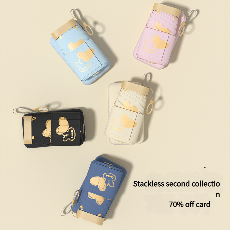 Ultra Compact 7 Fold Folding Umbrella Upf50+ Sun Protection Portable Clip Design Black Umbrellas