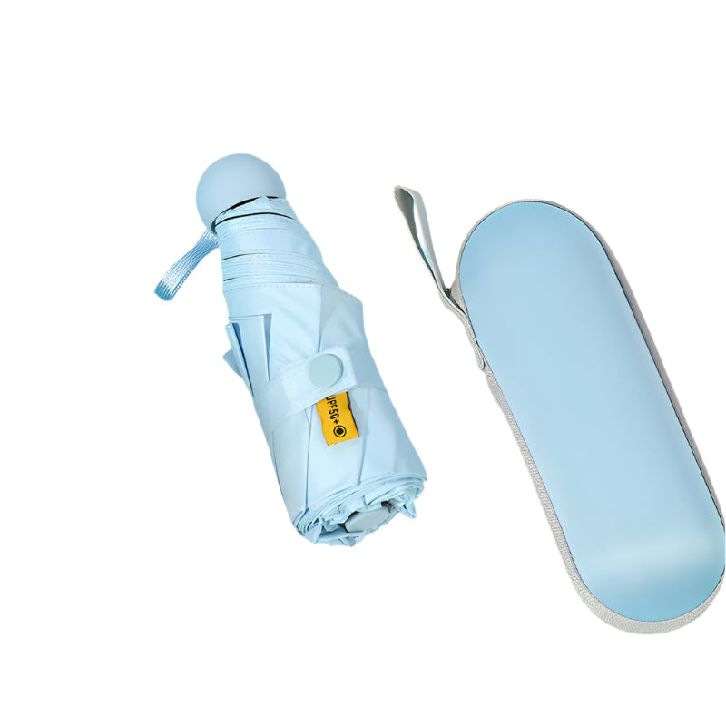 Elosung Sky Blue Compact 5 Fold Umbrella With Uv Protection Wind Resistance Travel Friendly Design Umbrellas