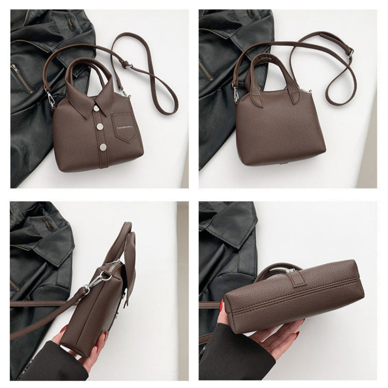 Discover the perfect blend of style and functionality with this trendy shirt-inspired PU shoulder bag. Its unique clothing-inspired design makes it a standout piece for any wardrobe. Compact yet spacious this bag is ideal for daily use or special outings. The detachable shoulder strap adds versatility allowing you to wear it as a shoulder bag crossbody bag or simply carry it by hand.