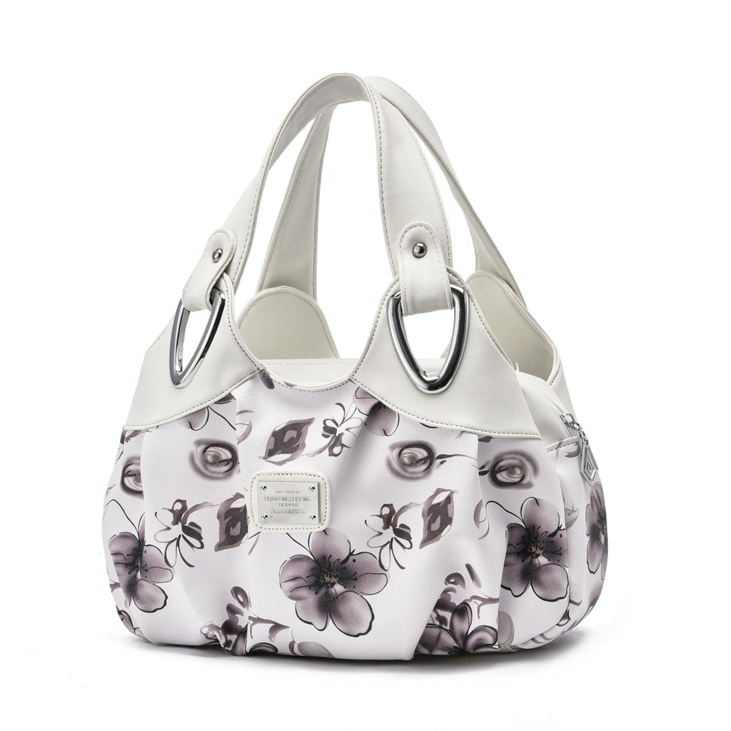 Soft Leather Women Handbag White Handle Gray Flower Women's Bags & Handbags