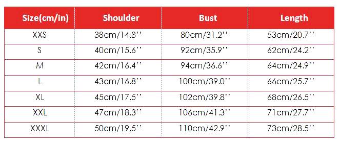 - Size: S/M/L/XL/XXL/XXXL (see size chart photo)