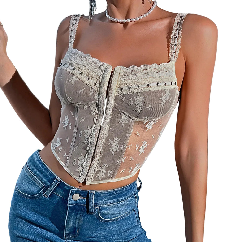 Sexy Strapless Lace Splicing Sheer Crop Top