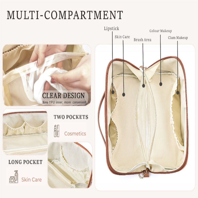 • Spacious Design: Large Interior Space With Multiple Compartments To Store Makeup Skincare And Toiletries.