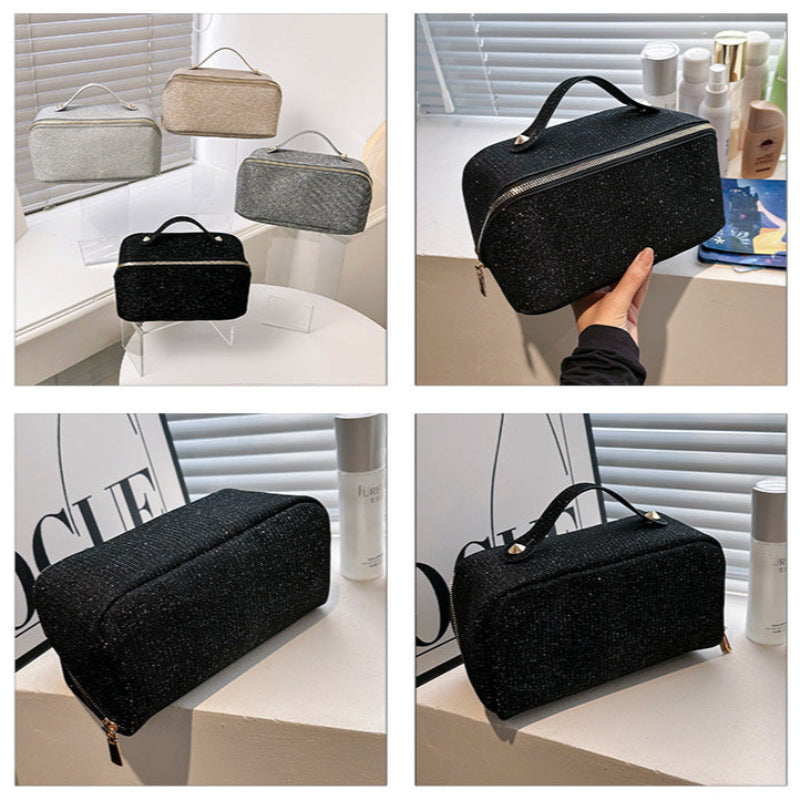 • 1 X Grey Elegant Glitter Cosmetic Bag With Zipper And Handle