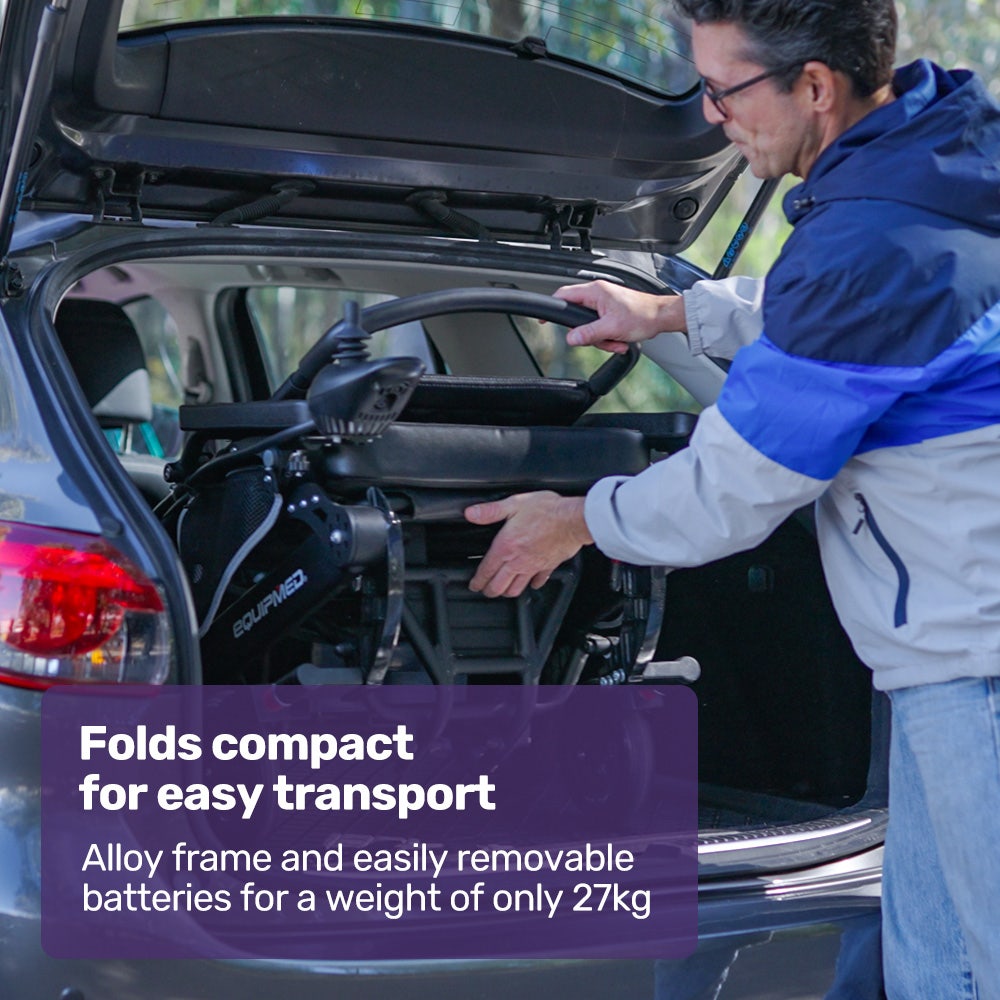 The Wheelchair Folds Quickly For Storage Or Transport. Its Alloy Frame And Easy-To-Remove Lithium Battery Make It As Light As Possible For Loading Into A Car Boot Or Compact Storage.
