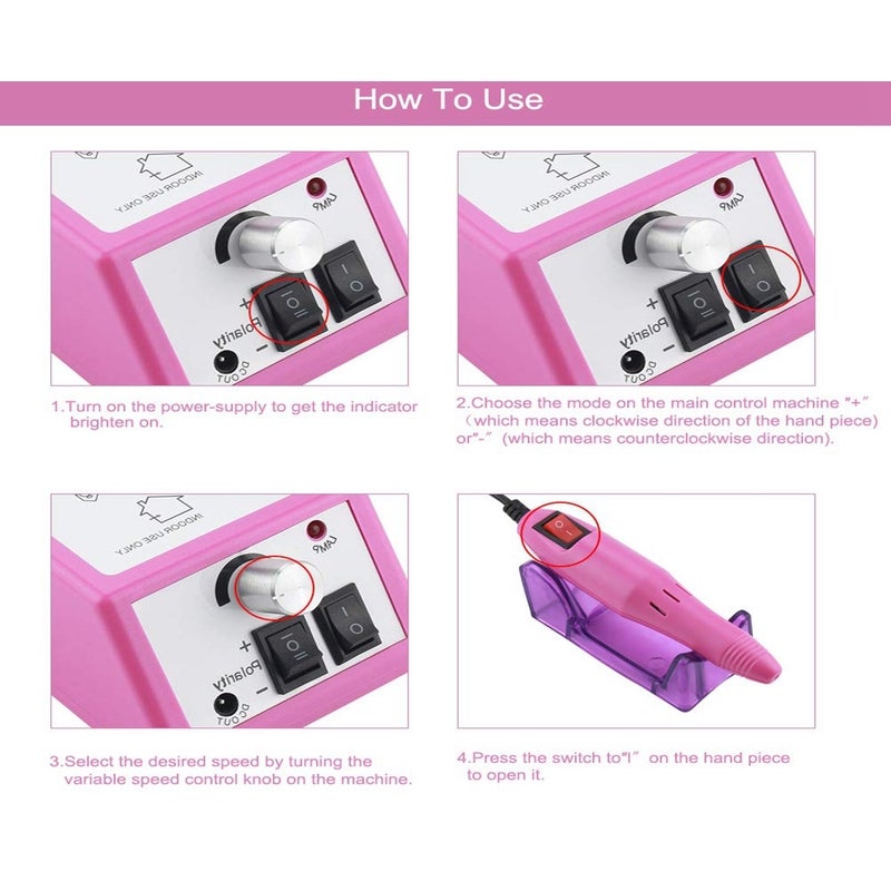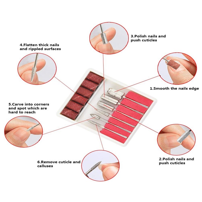 (Speed ) The Acrylic Nail Drill Speed Is And 6 Different Bits For Different Demands Each Bit Has Different Function For Nail Grinding Which Can Satisfy Your Different Demand.