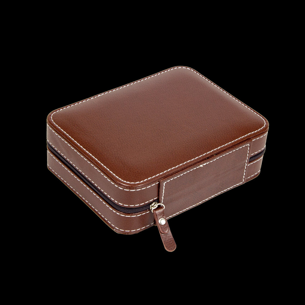P>For The Watch Lover In Your Life This Case Makes A Splendid Gift. Its Elegant Styling Makes It A Perfect Choice For Both Men And Women. If You Or Someone You Love Needs A Special Storage Solution For Their Treasured Watches This Is An Ideal Choice. Order Yours TodayP>Features And Specifications:Ul>Li>Dimensions: 18 X 14 X 6 Cm L X W X HLi>Weight: 400GLi>Capacity: 4 WatchesLi>Material: Pu Leather Velvet And Stretchy Elastic Straps To Secure WatchesLi>Colour: Brown With White StitchingLi>Superb CraftsmanshipLi>Zippered Closure/Ul>P>Note: Case Only No Watches Included.