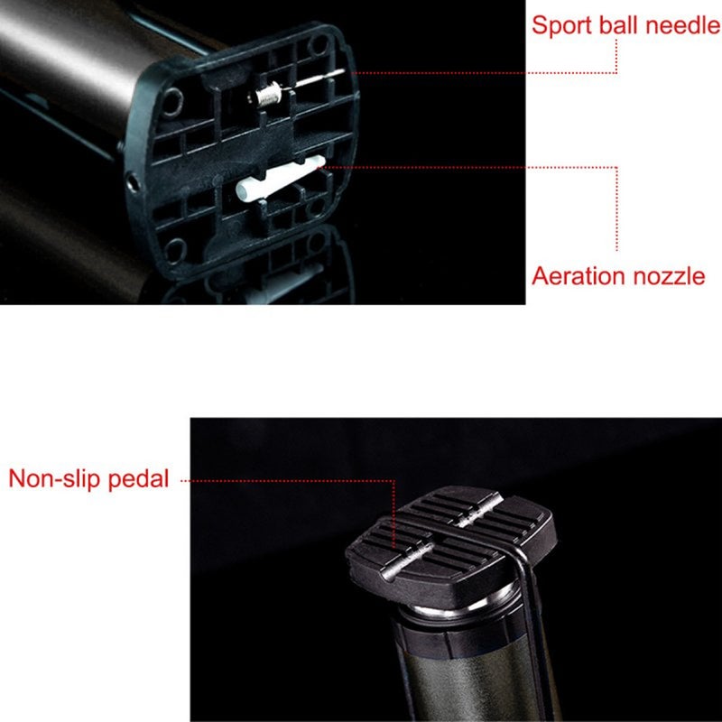• Aluminium alloy body anti-slip pedal cast-iron base the mini floor pump is stable and no slip.