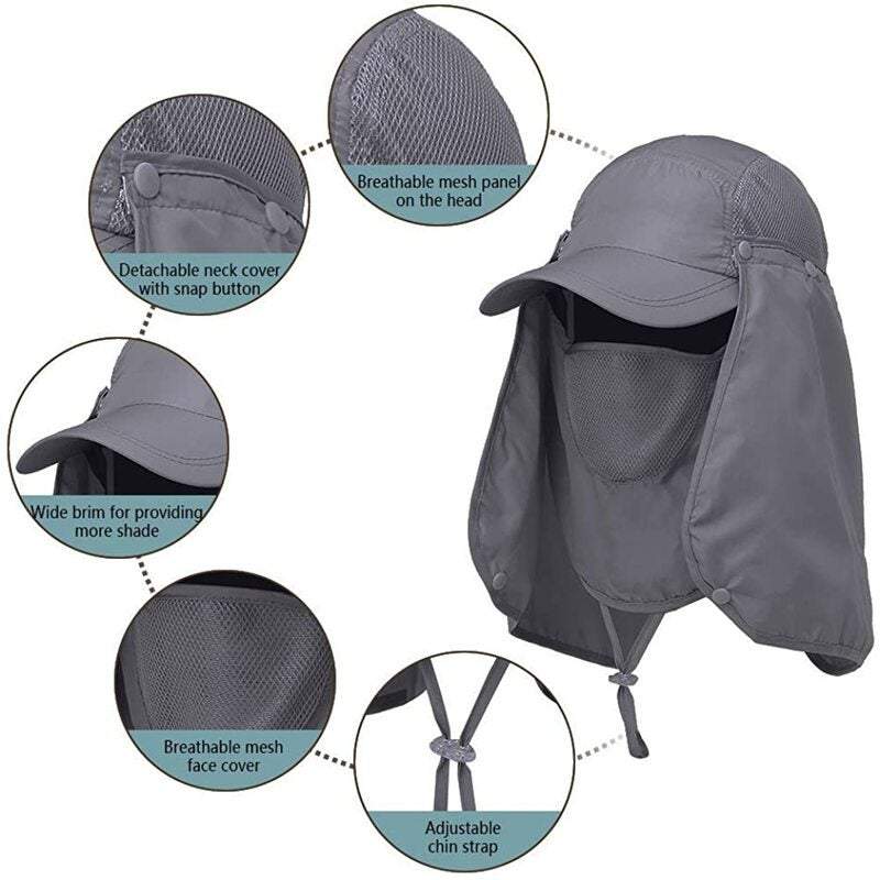 Protection: A Flip Cap With A Face Shield And A Sun Protection Cap Protect The Delicate Skin Of The Neck Ears And Face From Harmful Rays. The Whole Is Surrounded By A Large Shawl Free To Disassemble Sun Protection And Breathable. In Addition To The Removable Neck Guard And Breathable Mask It Can Also Protect The Skin From Various Factors And The Mask Can Protect The Face From Dust.