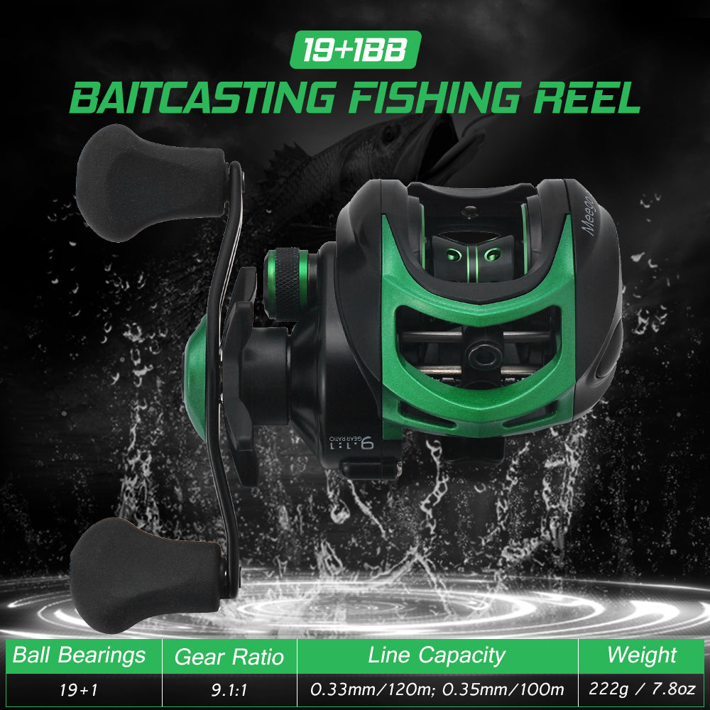 This Bait Casting Fishing Reel Features 19+1 Ball Bearings And 9.1:1 Super High Speed Gear Ratio Which Makes It A Powerful Fishing Tackle For Anglers.