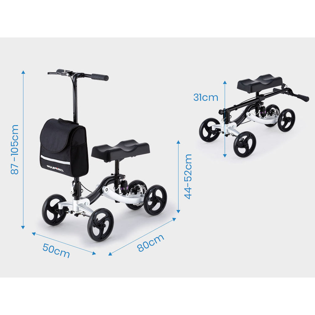 Equipmed Knee Walker Scooter Suspension Disc Brakes Silver Walkers & Canes