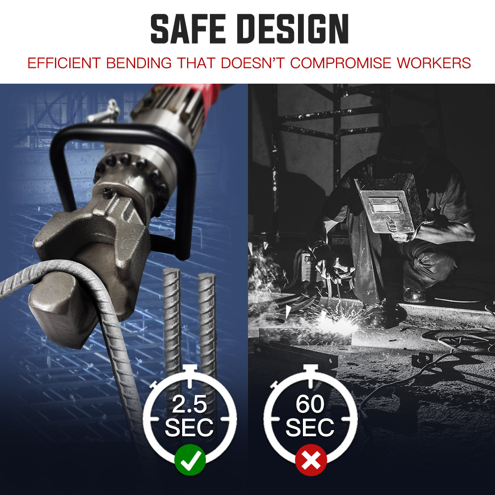 The demanding nature of Rebar cutting means it's vital that quality tools are used to do the job safely and efficiently. Baumr-AG's range of reo bar bending and cutting equipment certainly fits the bill. The commercial-grade Baumr-AG RB16B Hydraulic Rebar Bender is a must have for any builder with its tough body with a very weight of 14kg. The front and rear handle configuration allows it to be maneuvered into confined spaces and the front handle is designed to conveniently suit either right or left-handed operation.