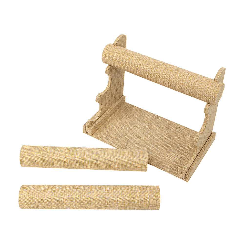 The Natural Linen Fabric Offers A Soft Neutral Backdrop That Enhances The Sparkle And Detail Of Your Jewelry. With Three Tiered Bars It Provides Ample Space To Display Bracelets Watches Bangles And Necklaces Allowing You To View Your Collection At A Glance. Lightweight And Easy To Transport It's Ideal For Both Personal Use And Retail Displays.