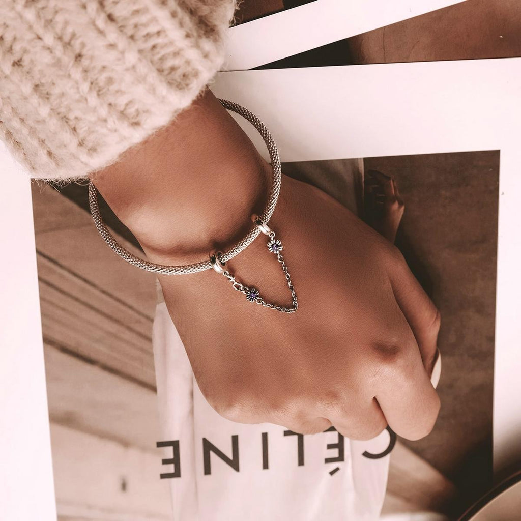925 Sterling Silver Flower Safety Chain For Diy Bracelets & Necklaces Charms & Pendants