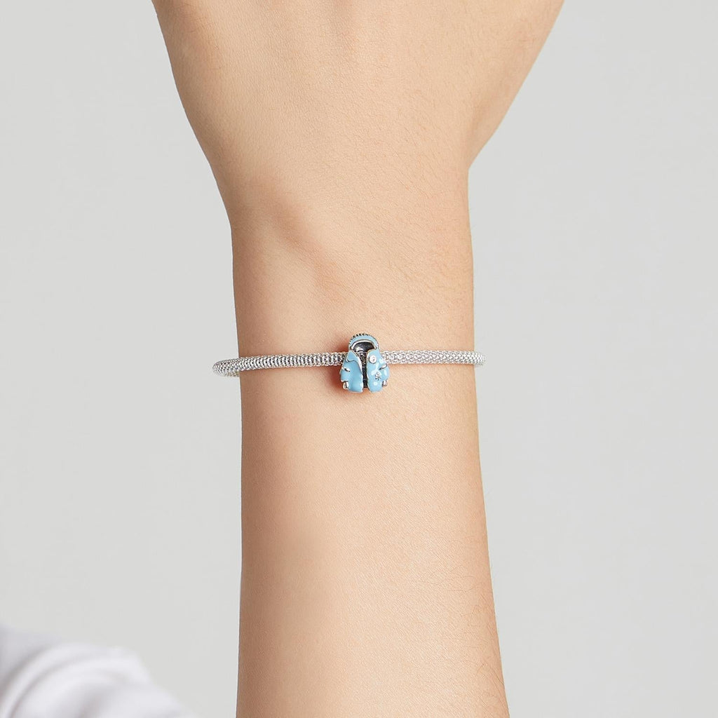 925 Sterling Silver Sky Blue Bead Bracelet / Necklace Set Charms & Pendants