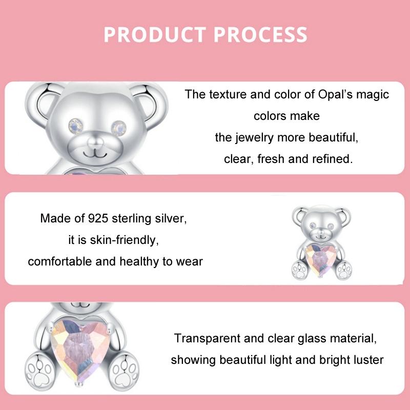 925 Sterling Silver Valentine's Day Bear Beads Charms & Pendants