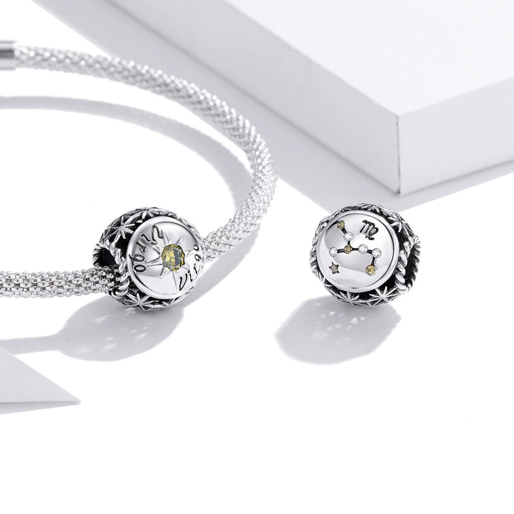 925 Sterling Silver Zodiac Zircon Bead Bracelet / Necklace Set Virgo Style Charms & Pendants