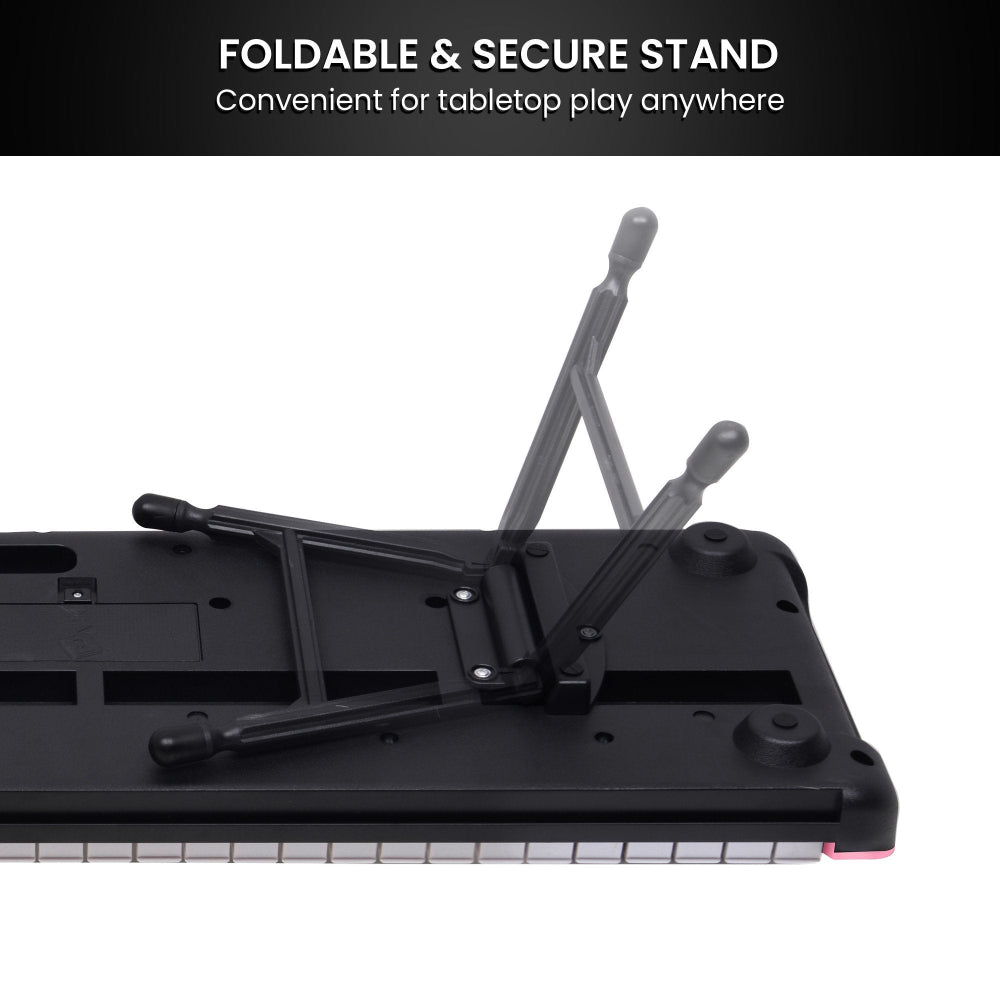 Karrera 61 Key Electronic Piano Keyboard With Led And Folding Stand In Pink Electronic Keyboards