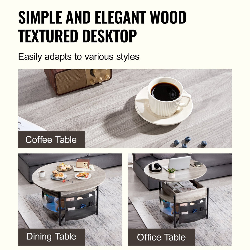 Vevor Lift Top Coffee Table 35.3" Round For Living Room White Coffee Tables