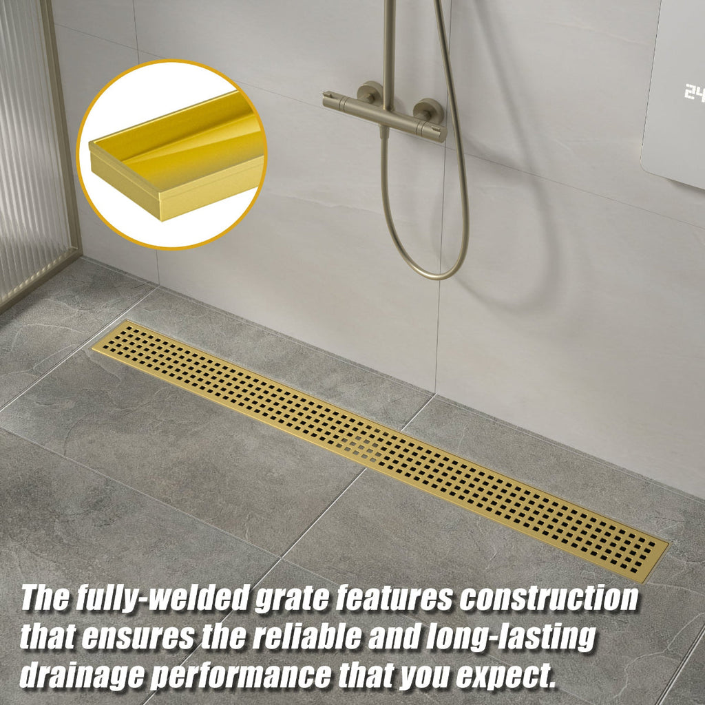 1200Mm Bathroom Shower Brushed Brass Grate Drain W/ Centre Outlet Floor Waste Square Pattern Drain Grates