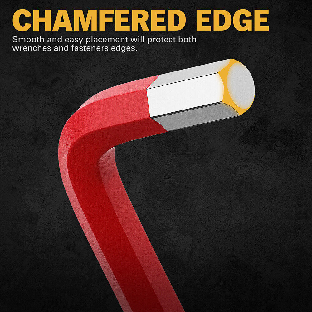DURABLE MATERIAL Constructed from high-grade CR-V and Chamfer material each allen wrench in this set boasts a mirror chrome finish with powder coating for maximum durability and resistance against corrosion. This makes the set perfect for heavy-duty use in both professional and DIY projects ensuring long-lasting reliability and strength.