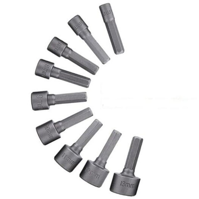 5 13Mm / 4 Inch Hex Shank Crv Screwdriver Socket Sleeve Nozzles Nut Driver Drill Bit Adapter 9Pcs Silver Drill Bits