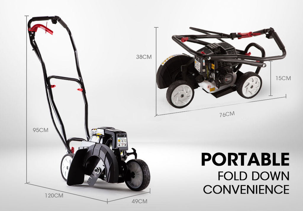 Unlike cheaper counterparts the EX-880R is simple and easy to operate. It comes with an innovative 3-wheel design spring return throttle and sharp alloy blade to make life easier and more convenient. The folding handle perfectly goes well with its overall compact design for easy storage and added manoeuvrability.