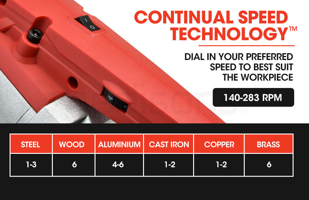 • 6-speed operation suitable for various materials including steel aluminum and wood