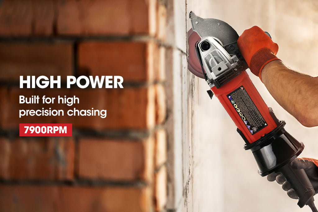 The wall chaser is equipped with a powerful heavy-duty 1700W motor that efficiently chase 41mm deep channels through tough concrete brickwork and besser blocks at 7900rpm.