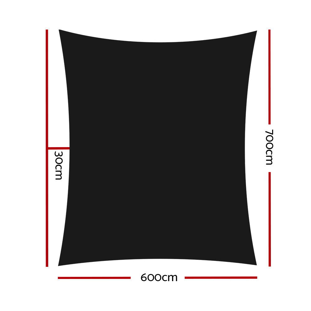Instahut Shade Sail 6X7m Rectangle 280Gsm 98% Black Shade Cloth Shade Sails