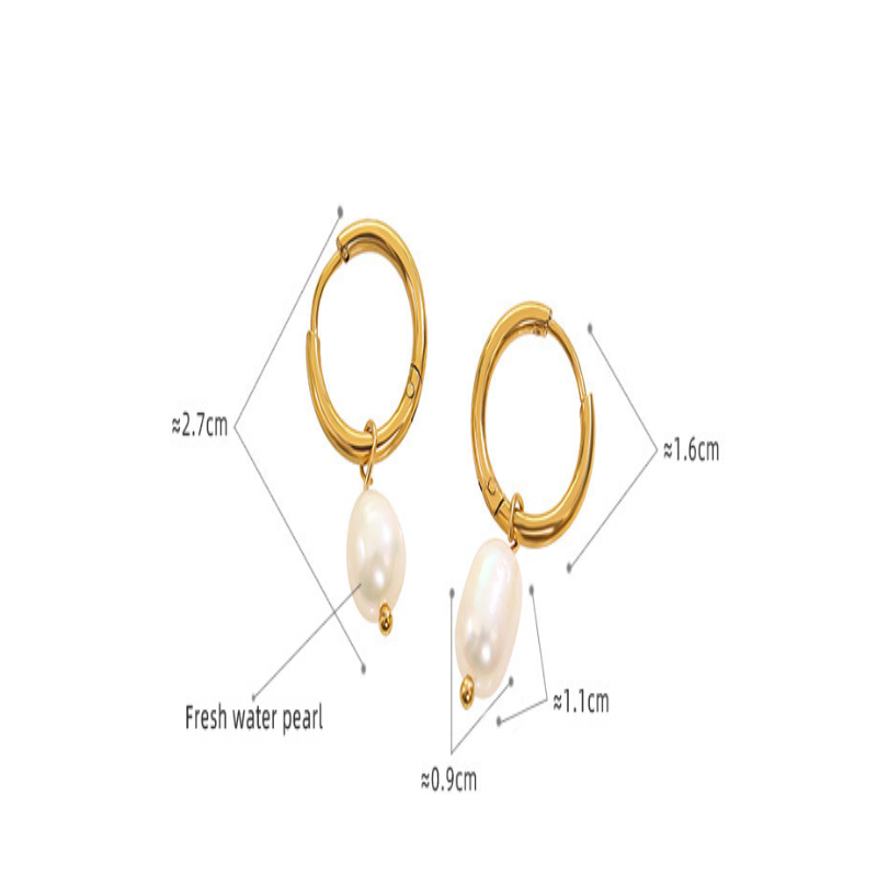 Retro Freshwater Pearl Ring Titanium Steel 18K Plated With Real Gold Jewelry Earrings