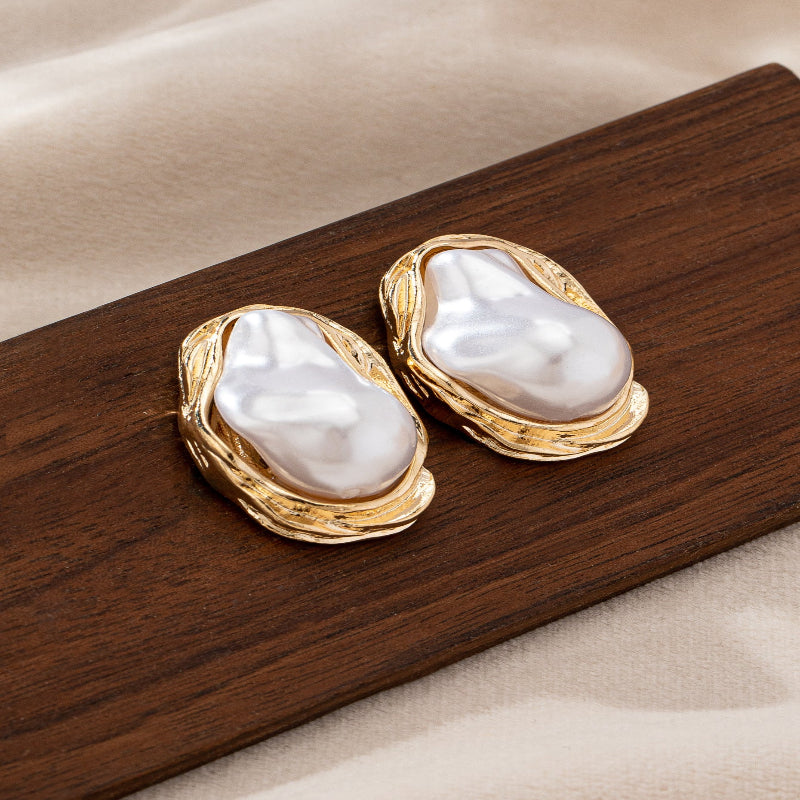 Retro Shaped Imitation Pearl For Women Exaggerated Personalized And Fashionable Design Earrings