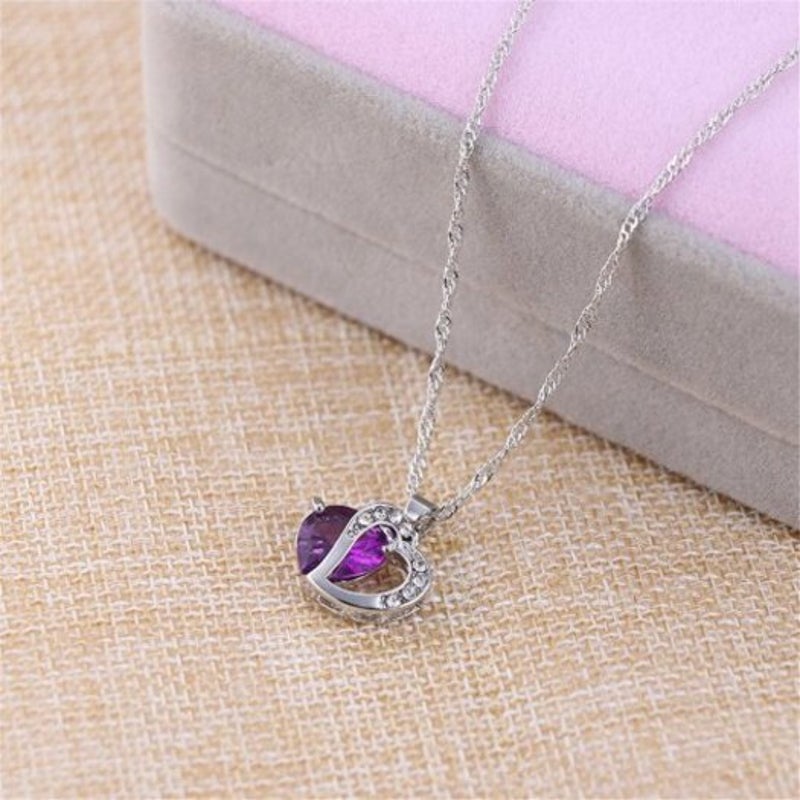 Veile Studios Peach Heart Drilling Pendant Water Chain Crystal Necklace Purple Necklaces & Pendants