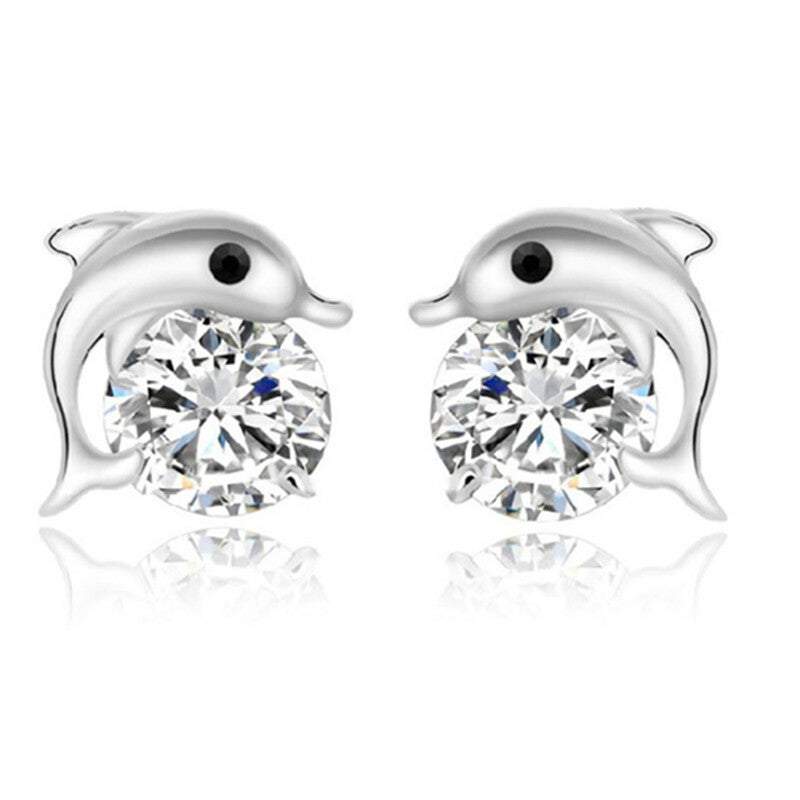 Veile Studios Cute Lovely Dolphin Cubic Zirconia Crystal Earrings
