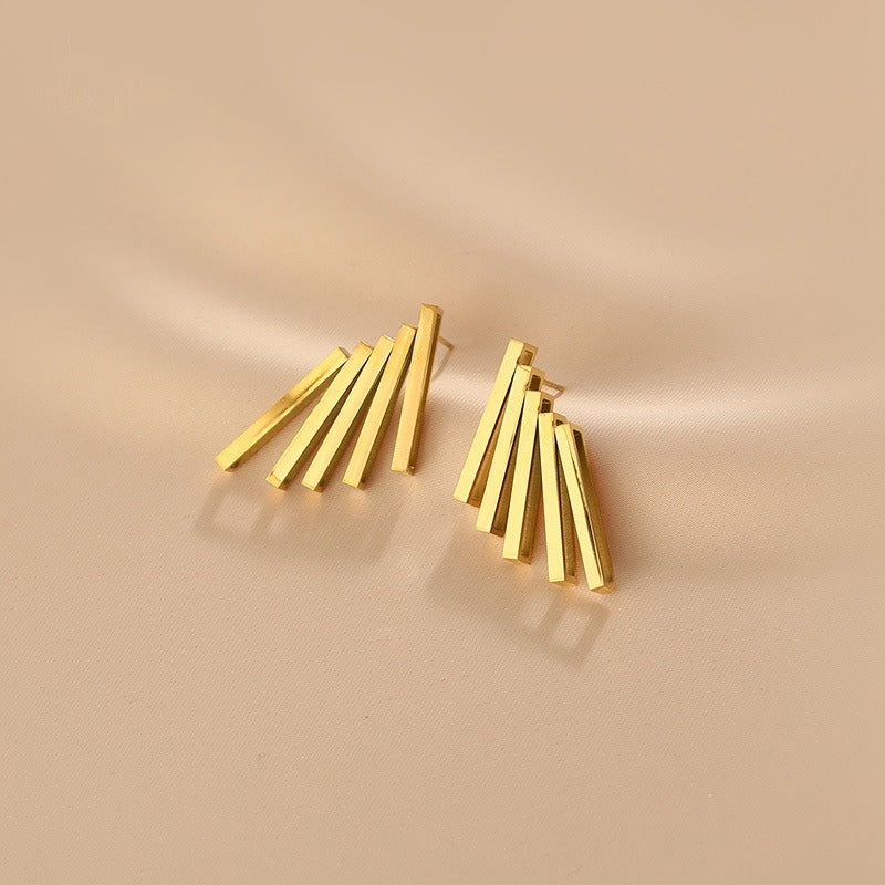 Veile Studios Exaggerated Metal Retro Style High End Titanium Steel Gold Colour Earrings