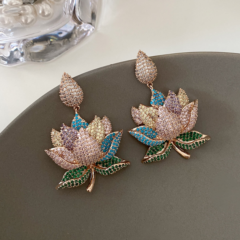 Veile Studios Lotus Plant Flower Inlaid Diamond Shaped Copper Earrings