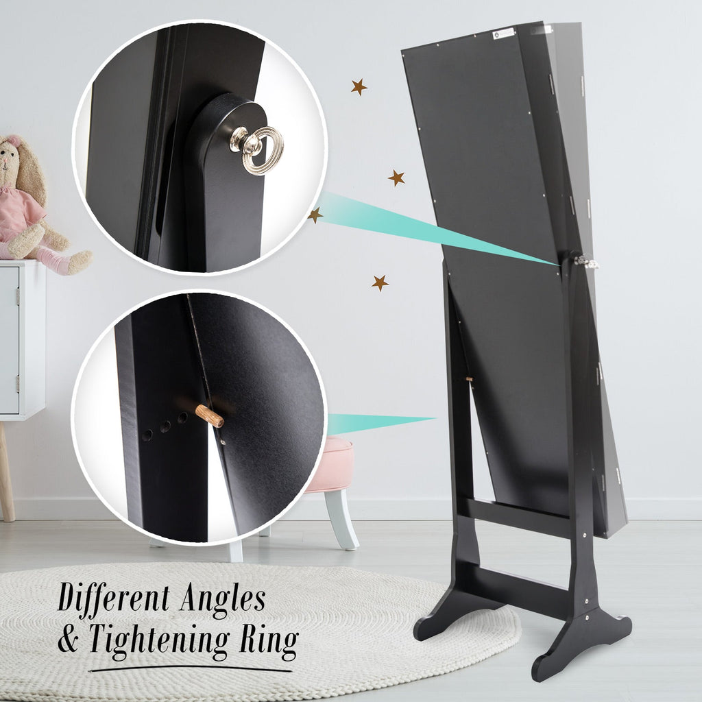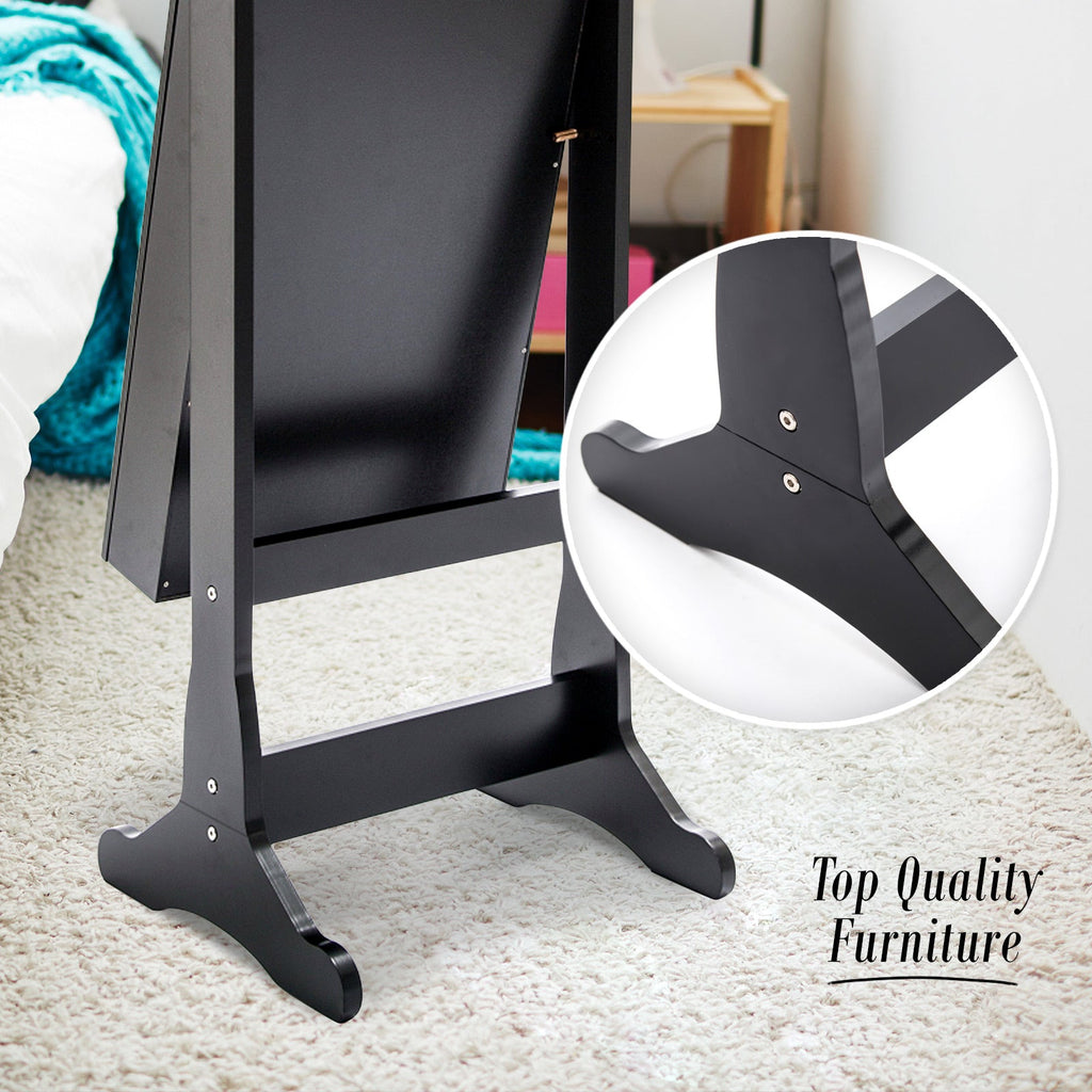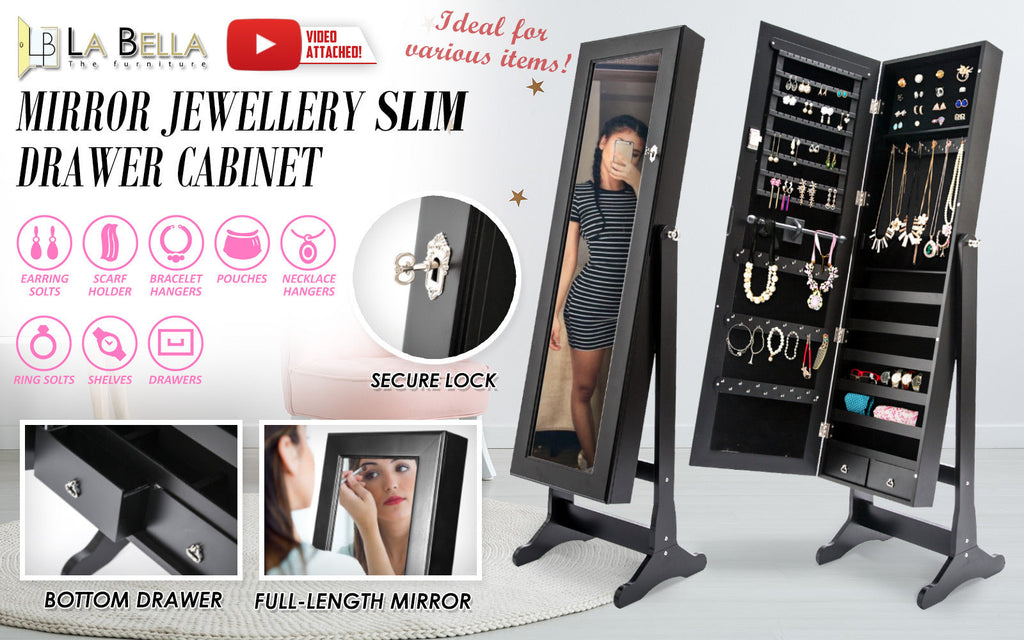 Keep Your Accessories Beautifully Organised And Easily Accessible With The La Bella Lowe Mirror Jewellery Cabinet. Featuring A Sleek Black Finish Full-Length Mirror And Spacious Internal Compartments This Stylish Organiser Blends Functionality With Elegance. With Dedicated Hooks Slots And Drawers For Your Favourite Jewellery And Accessories It's The Perfect Addition To Your Bedroom Dressing Area Or Studio.