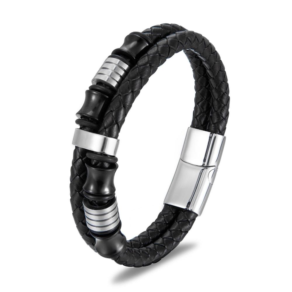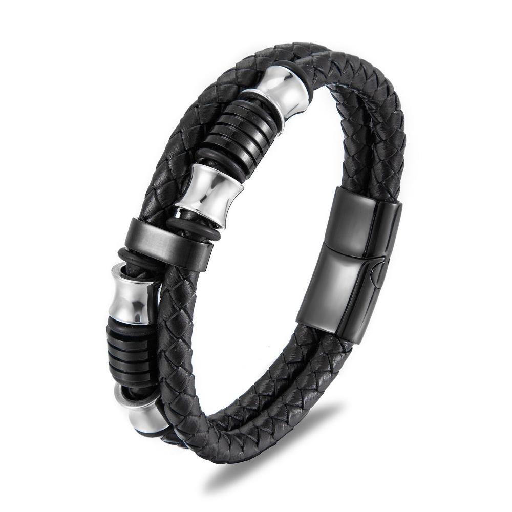 Veile Studios Black Leather Stainless Steel Mens Bracelet With Titanium And Rope Bracelets