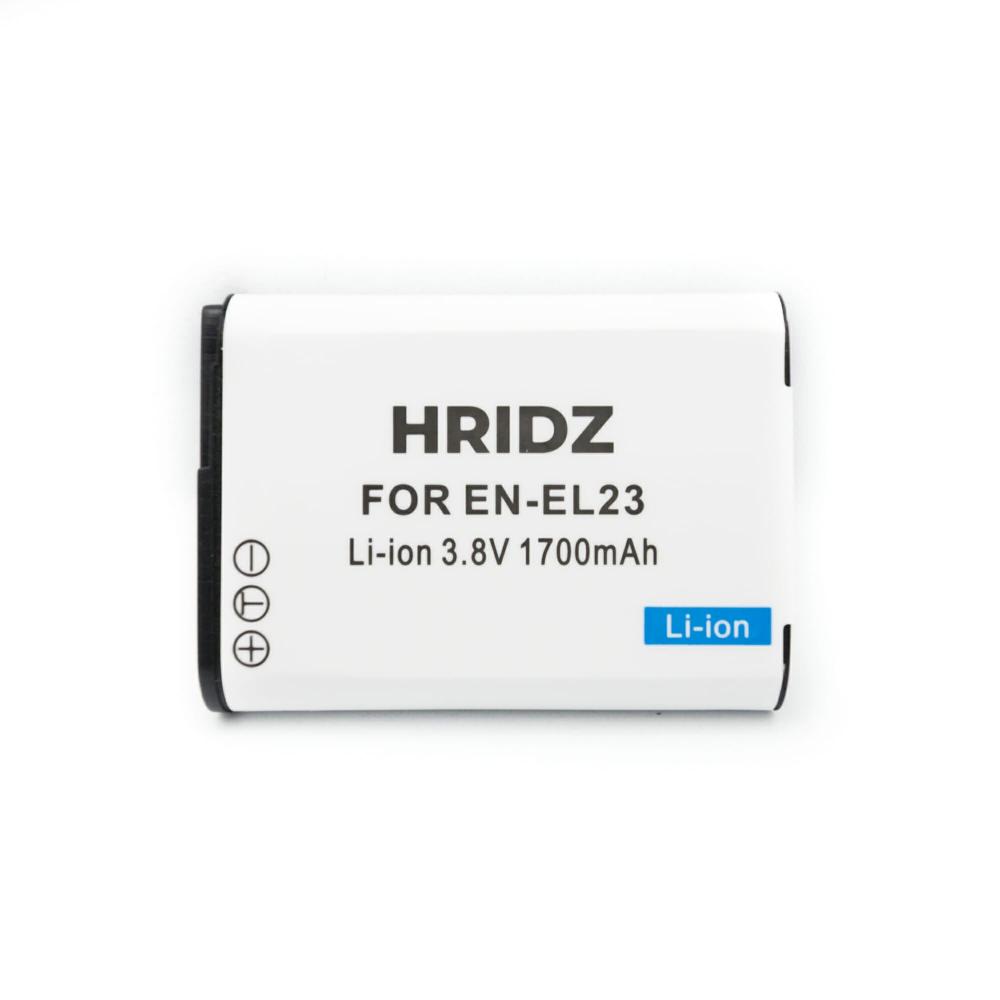 Hridz Battery Charger For Nikon En-El23 Includes 2 Replacement Batteries 1 Dual Usb Charger And 1 Micro Usb Cable For Nikon En-El23 Replacement. Each Battery Features 3.8V 1700Mah. Triple Your Camera Runtime With A Complete Backup Package Including Two Replacement Batteries And A Dual Battery Charger.