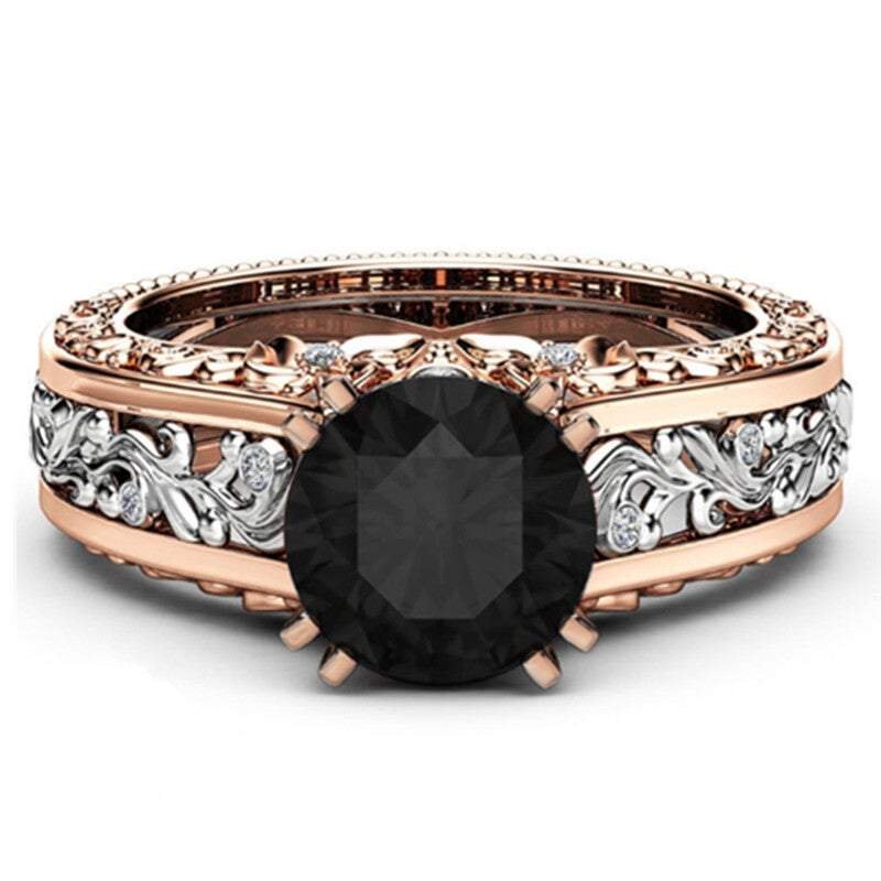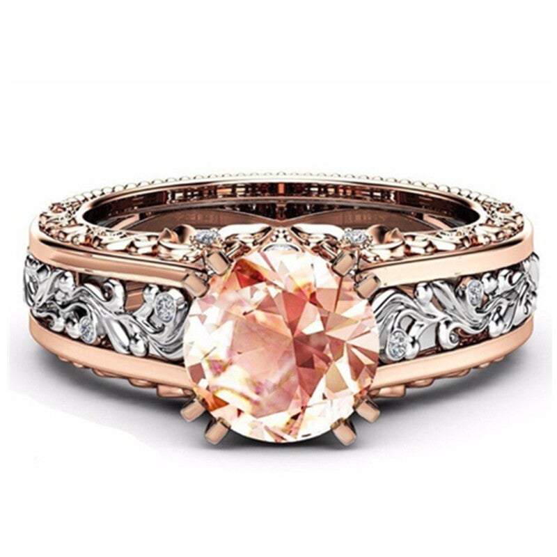 Veile Studios Rings Women Rose Gold Tile Topaz Wedding Engagement Floral Engagement/Wedding Ring Sets
