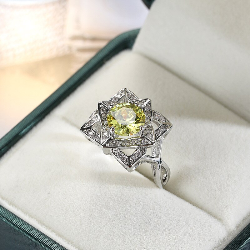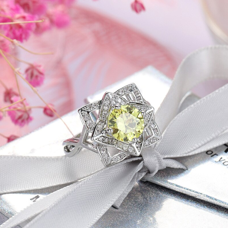 Veile Studios White Gold Plated Yellow Round Zircon Rings