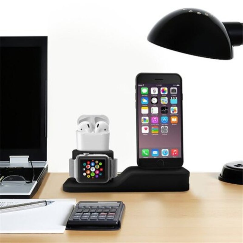 Silicone 3 In 1 Charging Stand Holder Dock For Iphone Apple Watch / Airpods Black Chargers & Docking Stations