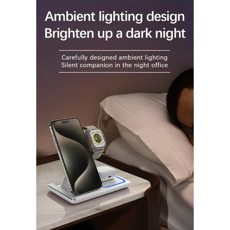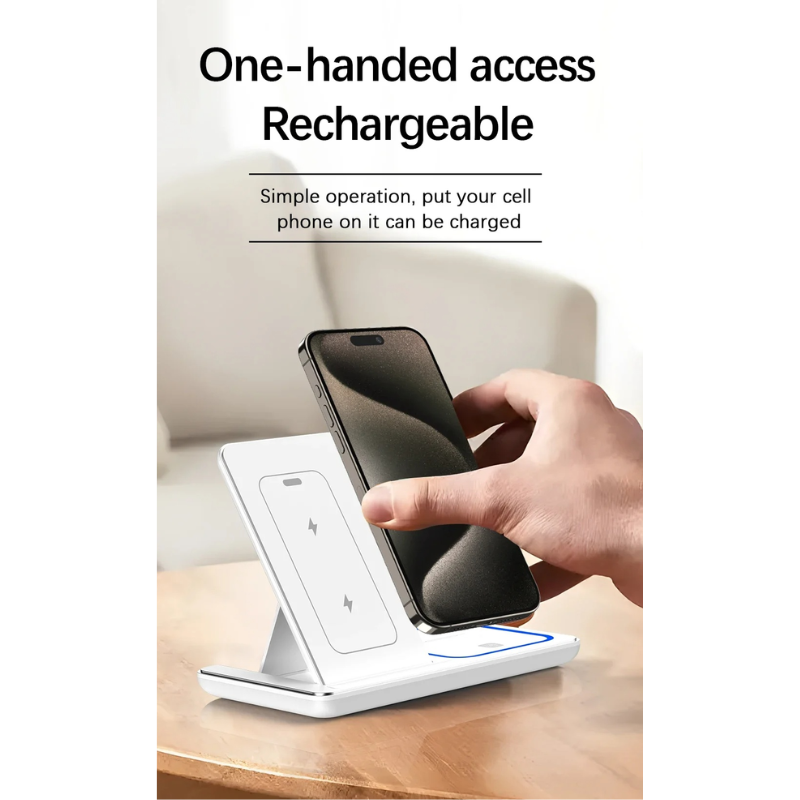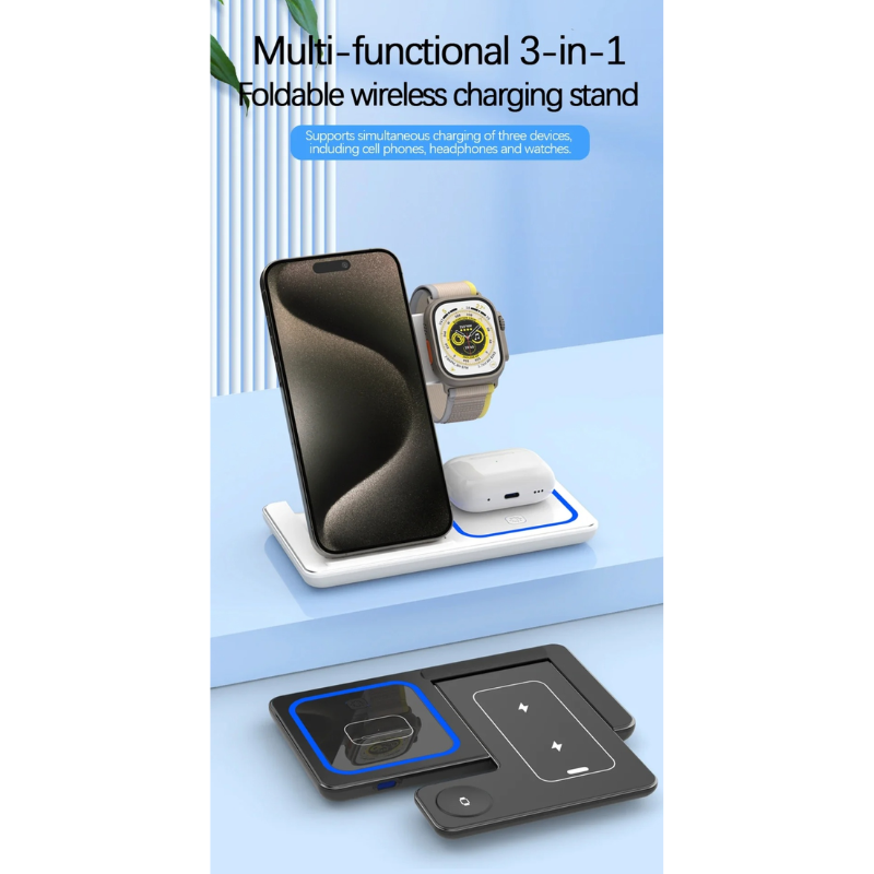15 Watt 3 In Wireless Charger Stand Foldable Charging Station For Smartphone And Iwatch Chargers & Cradles
