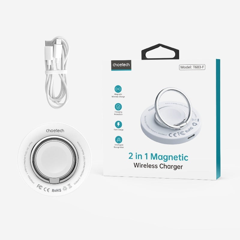 Choetech T603 F Ring Holder And Magnetic 15W Wireless Charger For Phone/Airpod/Iwatch Chargers & Cradles