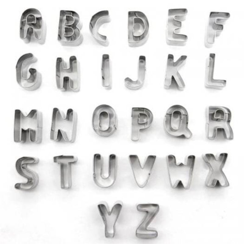26Pcs English Letters Stainless Steel Cake Mould Home Kitchen Baking Tools Silver Cookie Cutters