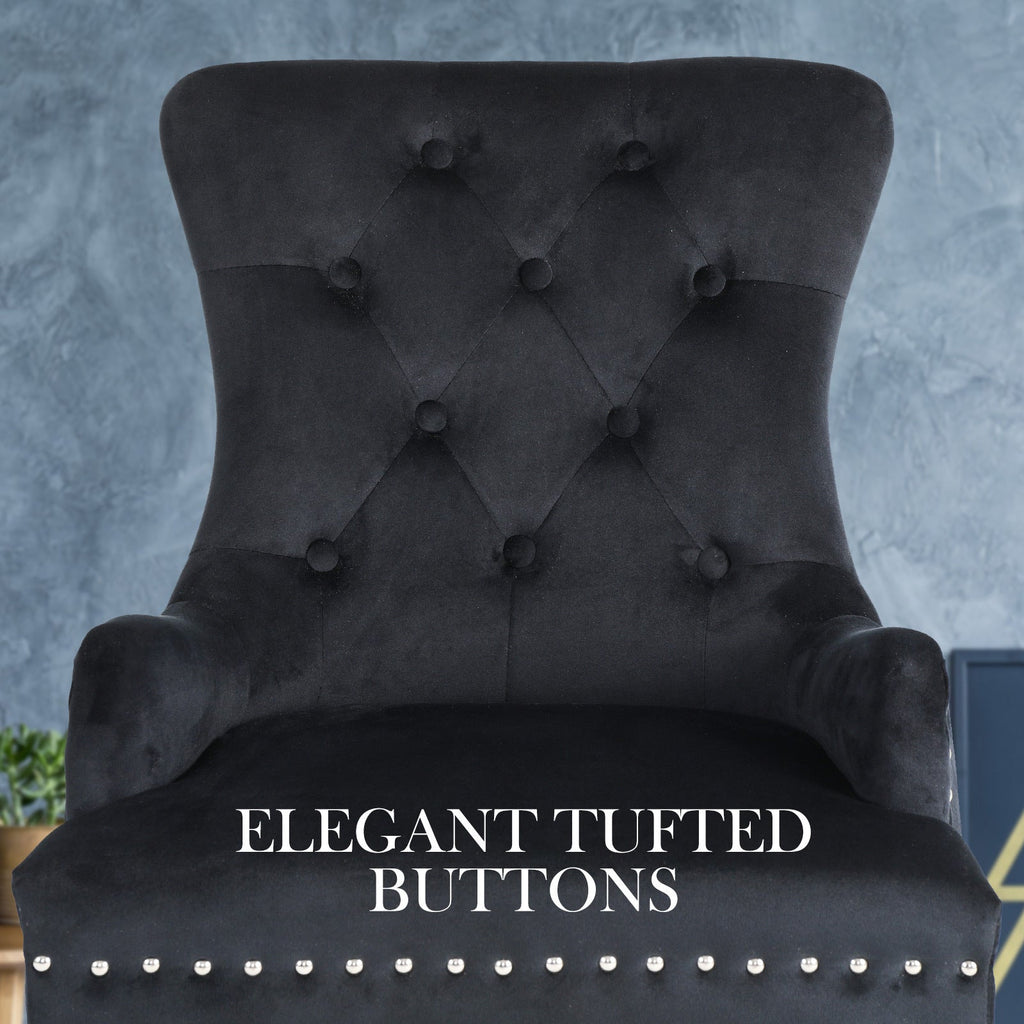 2X French Provincial Dining Chair Ring Studded Velvet Rubberwood Leg Lisse Black Dining Chairs