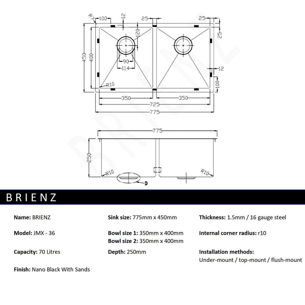 - 1 X Stainless Steel Double Bowl Sink (775 X 450Mm)