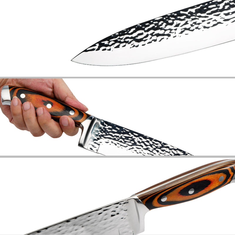 • Triple riveted Pakka Wood handle with a stunning two-toned finish
